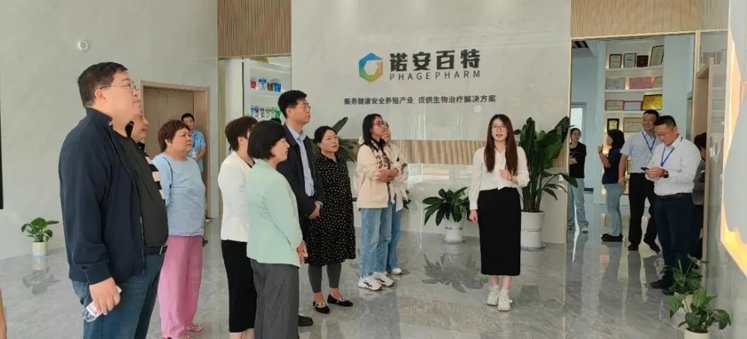 随后,研学团实地考察了青岛诺安百特生物技术有限公司,并与公司董事长兼总经理潘强深入交流。公司副总经理刘建兴、师延峰陪同参观了公司展厅、噬菌体制剂生产线、发酵车间等。就企业发展规划与产业布局、生产技术提升、工艺创新、养殖场应用与企业技术团队进行了深入交流。潘强表示,诺安百特作为国内噬菌体产业化的引领者,致力于为行业提供“精准生物治疗”方案。他强调,噬菌体技术不是对抗自然,而是利用自然规律实现病原精准清除、耐药性逆转的关键工具,有望在后抗生素时代发挥越来越重要的作用。